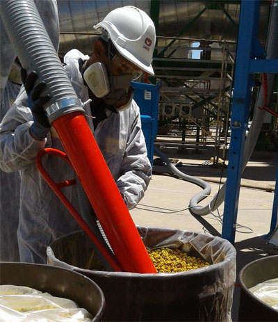 - b) Tamisage du catalyseur : L'opération de tamisage proprement dite consiste à extraire le catalyseur du convertisseur et l'orienter vers un crible. Lors de ces opérations, un soin extrêmement rigoureux doit être porté pour éviter la dégradation du catalyseur au moment de l'extraction, l'introduction et du déplacement du personnel.